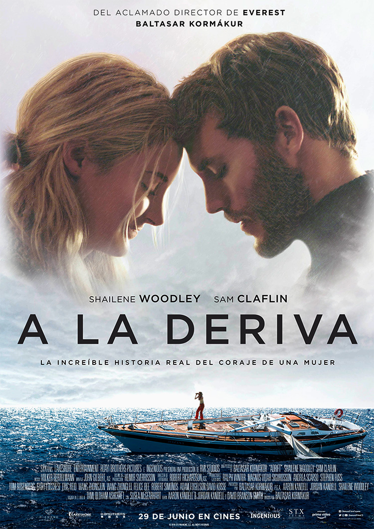 Basada en hechos reales, la nueva película del director islandés Baltasar Kormákur llega a las salas españolas. A la deriva cuenta la historia de una pareja que decide navegar en un velero desde Tahití hasta San Diego y que lucha por sobrevivir tras toparse con un huracán.